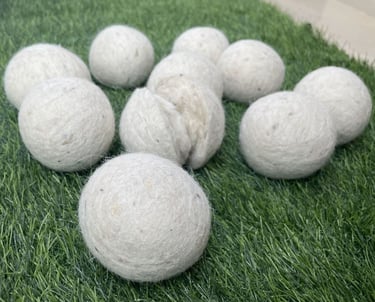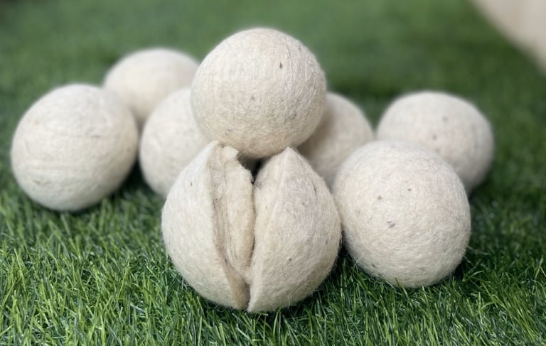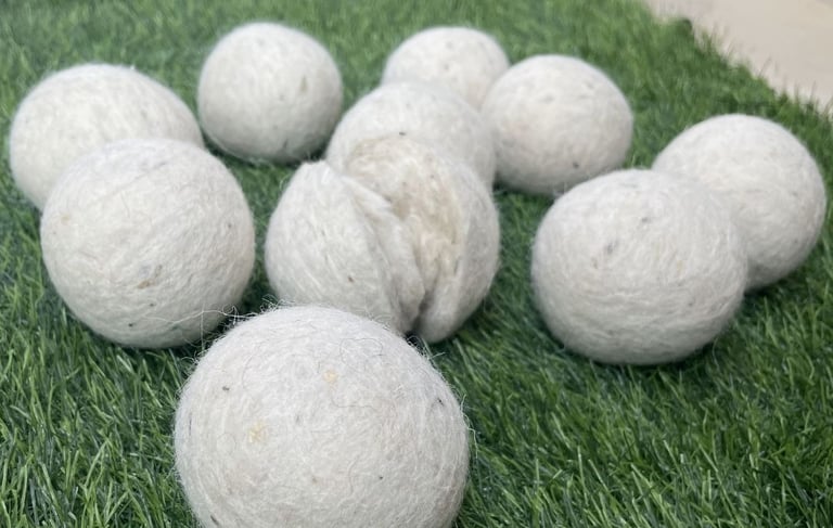 Woollen dryer balls are eco-friendly alternatives to traditional fabric softeners and dryer sheets made from 100% natural wool, usually sourced from sheep.